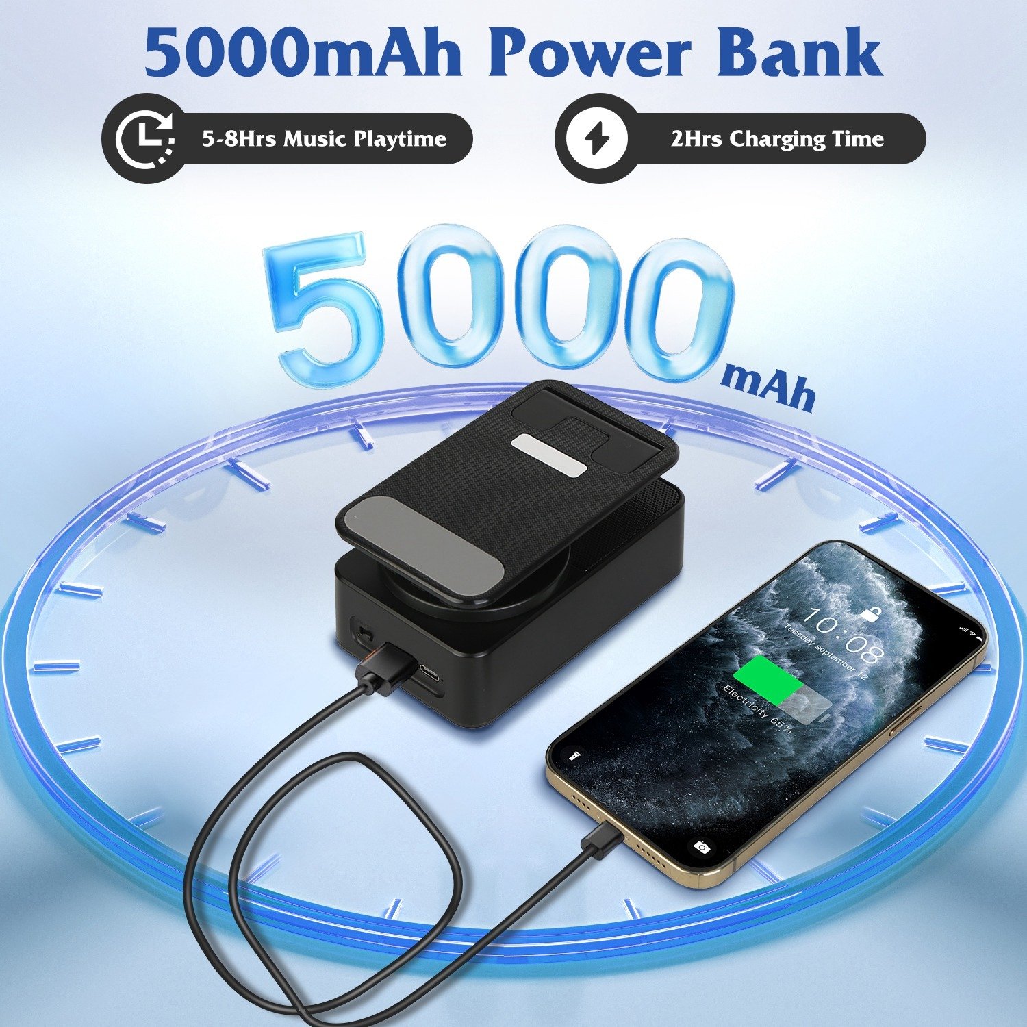 - *Powerful 5000mAh Capacity For Power & Music*: Equipped with a 5000mAh rechargeable battery,along with 1 USB output port and 1 Type-C input port,this phone stand with power bank ensures that your cell phone and iPad never run out of juice. Moreover,it allows you to enjoy up to 8 hours non-stop music playback,making it perfect for long-haul road trips or lazy weekends at home.