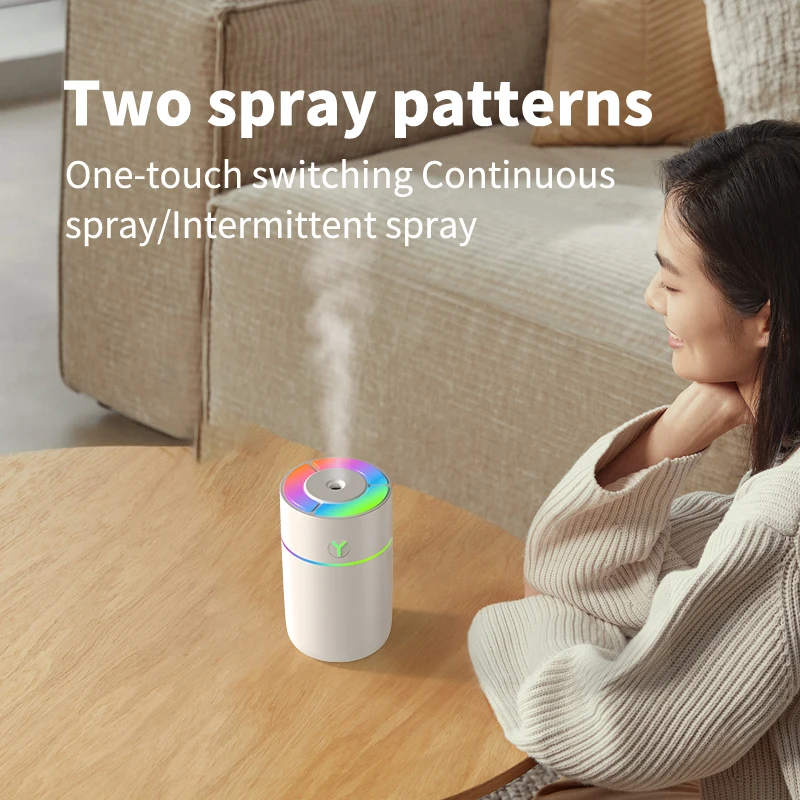 Click the power button to activate the continuous spray mode and also activate the colorful light mode;