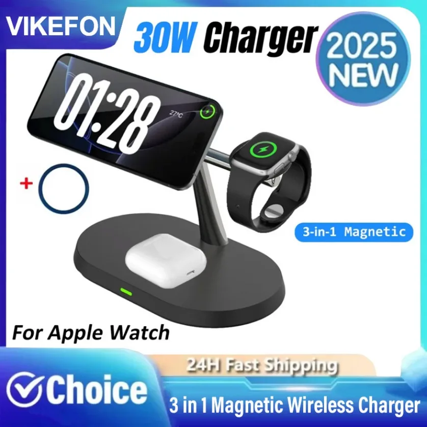 β‘ Fast Charging Up to 30W β Enjoy powerful magnetic charging at 30W for iPhones (16/15/14/13/12), Apple Watch (10-3 series), and AirPods Pro 2/4.