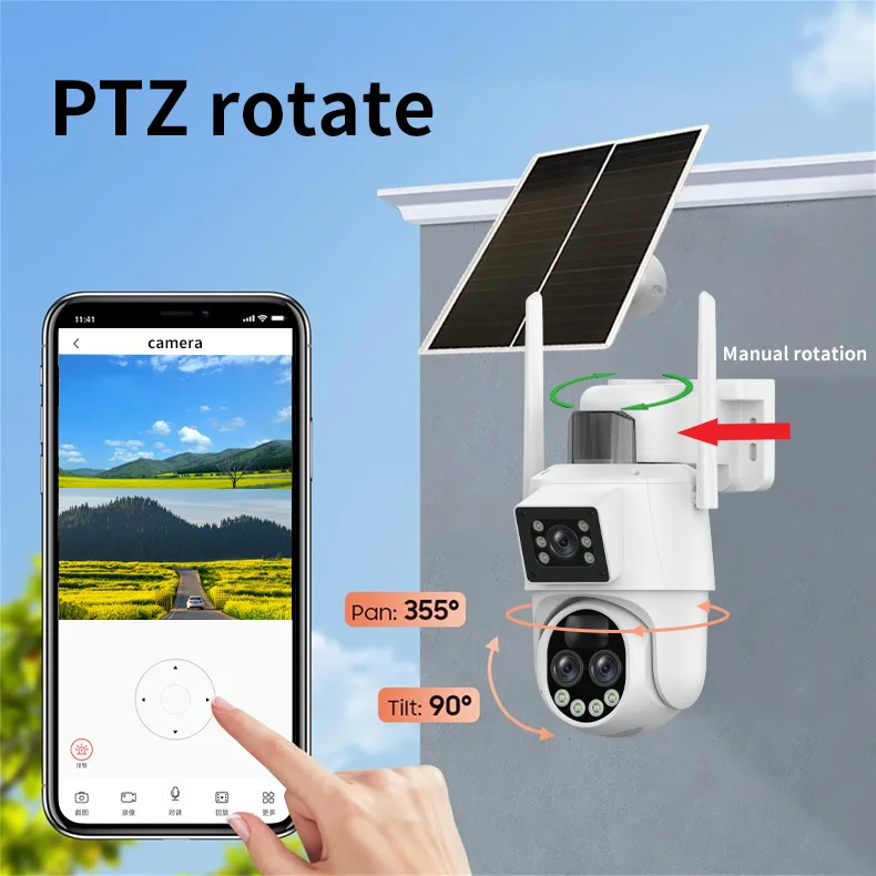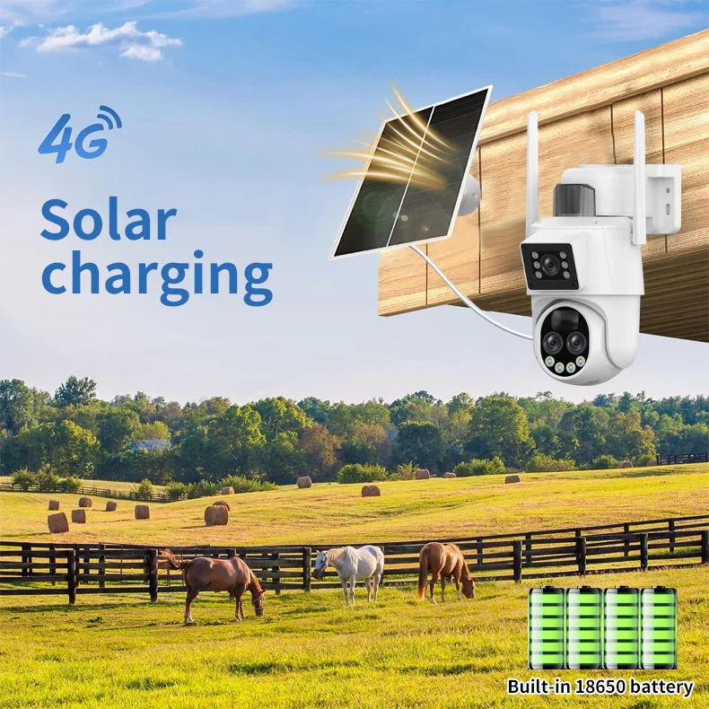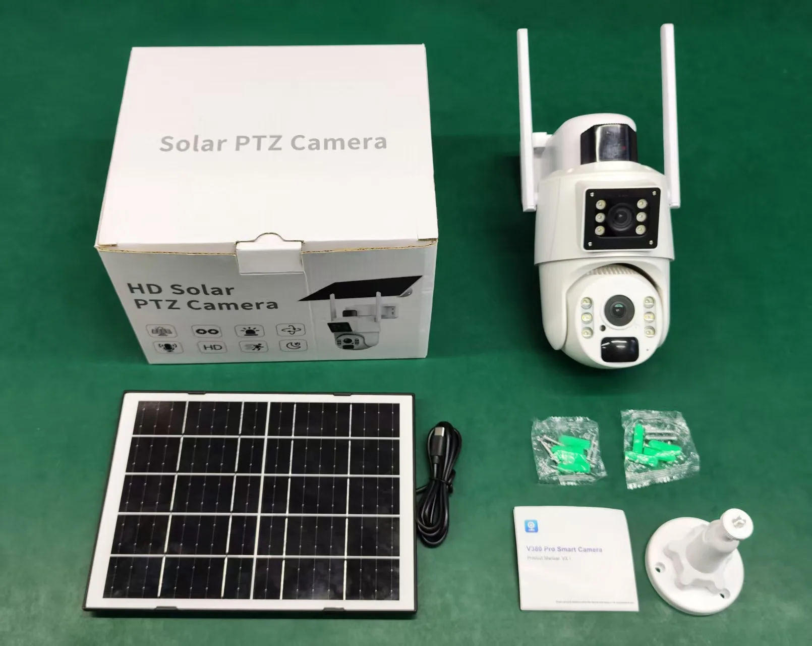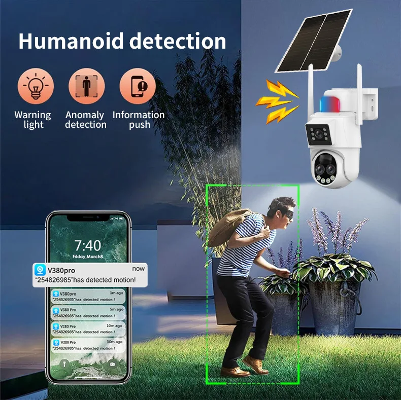 secure your home with the V380Pro 6MP dual lens solar-powered CCTV camera featuring 10x zoom, AI humanoid detection, and WiFi/4G connectivity—perfect for 24/7 smart monitoring.