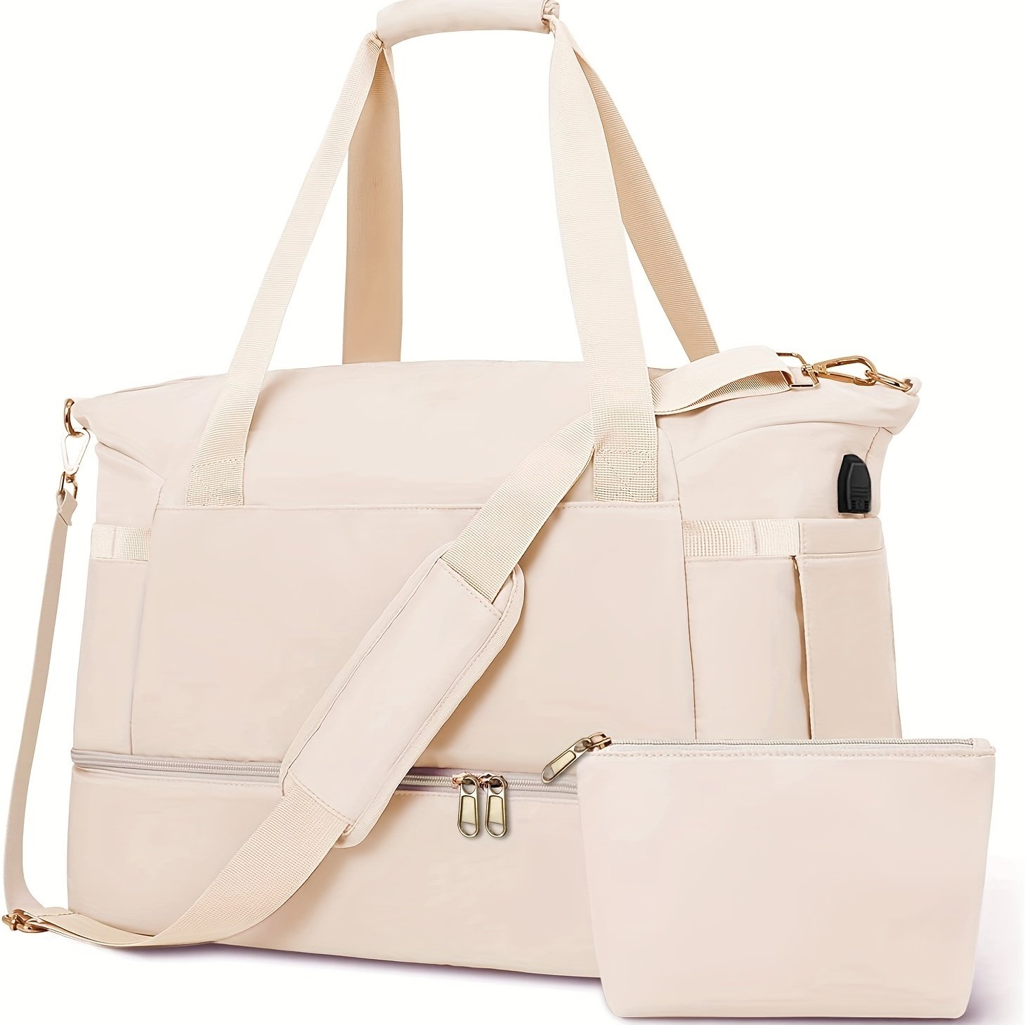 Dry wet separation luggage bag: This luggage bag features a unique design with double compartments to keep your items organized. One compartment is used to store clothes and other items, while the other compartment is waterproof and perfect for storing wet clothes, towels, or swimwear. In addition, it also includes an internal pocket for protecting your valuable items.