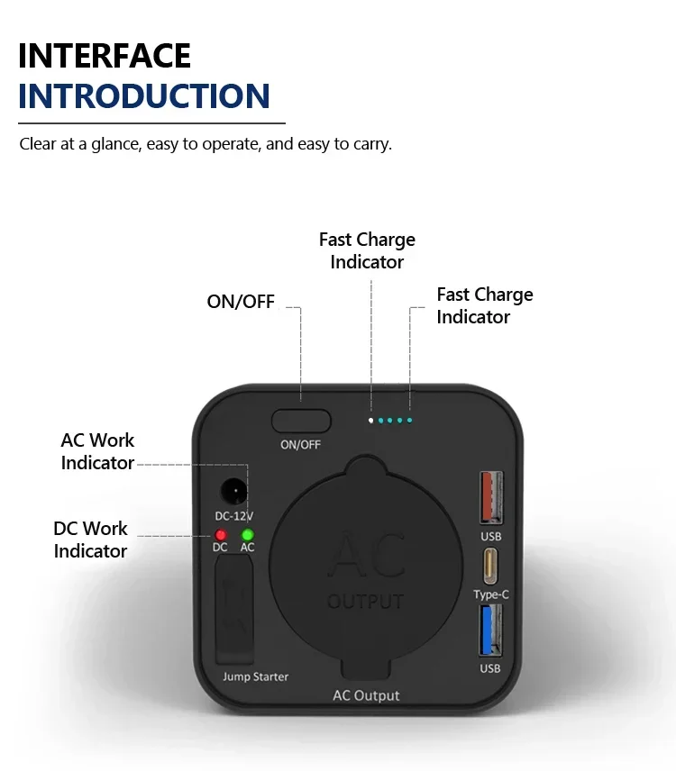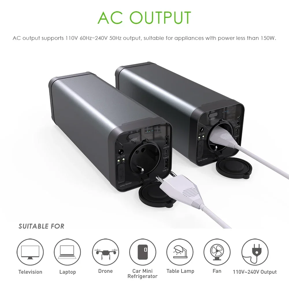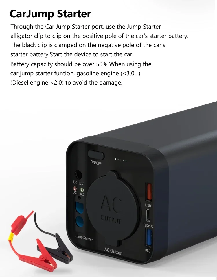 Use for outdoor gear, emergency power, mobile charging, or car starting.