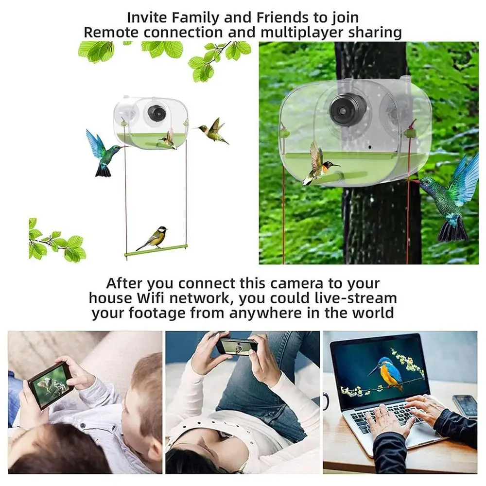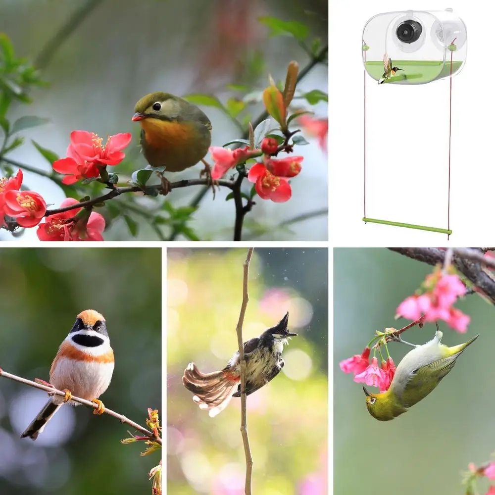 Observe your pet birds in HD with this multifunctional smart bird feeder with a camera. Easy installation with suction cups and weatherproof design.