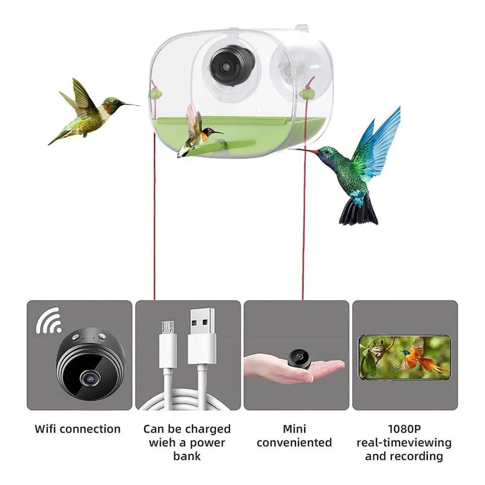 📹 Built-In Watching Camera – Capture bird activity in real-time.